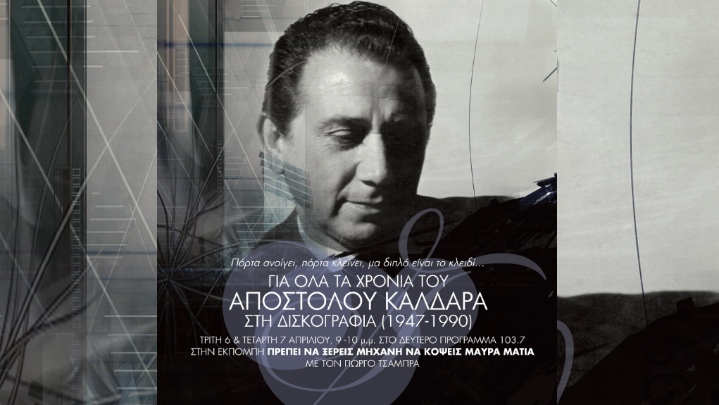 31 χρόνια από τότε που έφυγε από τη ζωή ο Απόστολος Καλδάρας, τα τραγούδια του είναι πάντα παρόντα. Οι επιλογές μας από όλα τα χρόνια της διαδρομής του. Απ’ όλες τις εποχές του, απ’ όλους τους – βασικούς, τουλάχιστον – ερμηνευτές του, από μεγάλες επιτυχίες αλλά και από λεπτομέρειες αυτής της διαδρομής. Πρώτες αλλά και νεότερες εκτελέσεις. Καθώς αρκετά από τα τραγούδια του, έχουν γνωρίσει νεότερες εκτελέσεις – πολλές μάλιστα με φροντίδα του ίδιου – και μέσα απ’ αυτές έγιναν γνωστά στις επόμενες γενιές, ακόμα και το «Νύχτωσε χωρίς φεγγάρι», δεν ξέρουμε με ποια εκτέλεση μπορεί να το έχει συνδέσει ο καθένας. Χασκίλ, Νίνου και Στράτος Παγιουμτζής – Καζαντζίδης, Πόλυ Πάνου, Γαβαλάς, Αγγελόπουλος, Μοσχολιού και Νίκος Ξανθόπουλος – Κόκοτας, Νταλάρας, Πάριος, Αλεξίου, Γλυκερία. Πάντα με την πεποίθηση και με στόχο ότι «Πρέπει να ξέρεις μηχανή να κόψεις μαύρα μάτια».