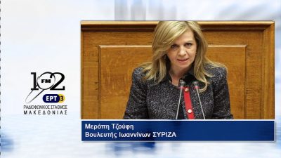Την απόφαση της κυβέρνησης να μην υλοποιήσει τα μέτρα σε περίπτωση που το ΔΝΤ δε συμμετέχει οικονομικά στο πρόγραμμα επανέλαβε μιλώντας στον 102FM της ΕΡΤ3 η βουλευτής Ιωαννίνων του ΣΥΡΙΖΑ Μερόπη Τζούφη. «Είναι μια κρίσιμη ώρα να ξεκαθαρίσει το ΔΝΤ τι θα κάνει. Δεν μπορεί να ζητά σκληρά μέτρα με επιπτώσεις στον ελληνικό λαό και από την άλλη να μην συμμετέχει χρηματοδοτικά», σημείωσε.