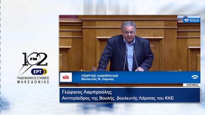 «Η Ελλάδα δίνει γη και ύδωρ» ανέφερε ο αντιπρόεδρος της Βουλής, βουλευτής Λάρισας του ΚΚΕ Γεώργιος Λαμπρούλης σχολιάζοντας τις επαφές του Έλληνα πρωθυπουργού Αλέξη Τσίπρα με τον Αμερικανό πρόεδρο Ντόναλντ Τράμπ.