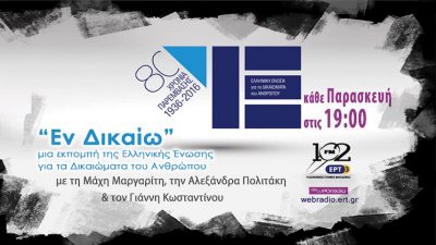 Στα προσεχή σχέδια της Ελληνικής Ενωσης για τα Δικαιώματα του Ανθρώπου αναφέρθηκε ο νέος πρόεδρός της, δικηγόρος Αθηνών, Γιάννης Ιωαννίδης, μιλώντας στη Μάχη Μαργαρίτη και τον Γιάννη Κωνσταντίνου, στην εκπομπή «Εν Δικαίω». Επίσης, στους συντελεστές της εκπομπής και με αφορμή το θλιβερό περιστατικό στο χωριό Βουλιαράτι στην νότια Αλβανία, ο δημοσιογράφος, Νίκο Αγκο, Αλβανός υπήκοος με πάνω από 20 χρόνια παραμονής στην Ελλάδα, αναφέρθηκε στις σχέσεις Ελλάδας – Αλβανίας και τους λόγους που αυτές παραμένουν τεταμένες. Εξάλλου, για τις σχέσεις στην ελληνοαλβανική μεθόριο και για την ένταση που σταδιακά επικρατεί εκεί, μίλησε ο καθηγητής της Κοινωνικής Λαογραφίας του Τμήματος Ιστορίας και Αρχαιολογίας του Πανεπιστημίου Ιωαννίνων Βασίλης Νιτσιάκος.