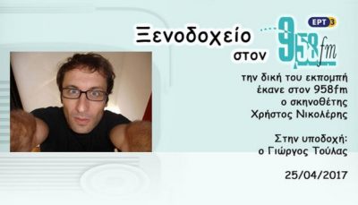 Στις 25 Απριλίου 2017, τη δική του εκπομπή στον 9.58 έκανε ο σκηνοθέτης Χρήστος Νικολέρης