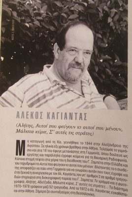 «Πρέπει να ξέρεις μηχανή να κόψεις μαύρα μάτια» Τρίτη 14 Μαϊου 2019, Αφιέρωμα στους στίχους του ΑΛΕΚΟΥ ΚΑΓΙΑΝΤΑ. Με μούσική ΓΙΩΡΓΟΥ ΖΑΜΠΕΤΑ και άλλων συνθετών… στο Δεύτερο Πρόγραμμα της Ελληνικής Ραδιοφωνίας (Α’ Μερος)