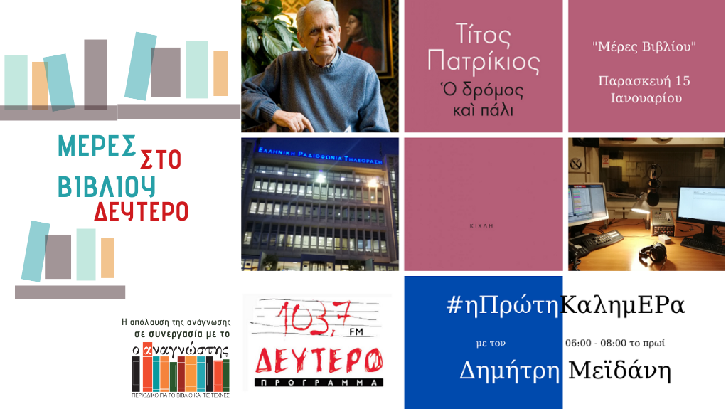 Σήμερα ο Τίτος Πατρίκιος μιλάει στην εκπομπή #ηΠρώτηΚαλημΕΡα και στον Δημήτρη Μεϊδάνη για την ποιητική του συλλογή «Ο δρόμος και πάλι» που κυκλοφορεί από τις εκδόσεις Κίχλη.