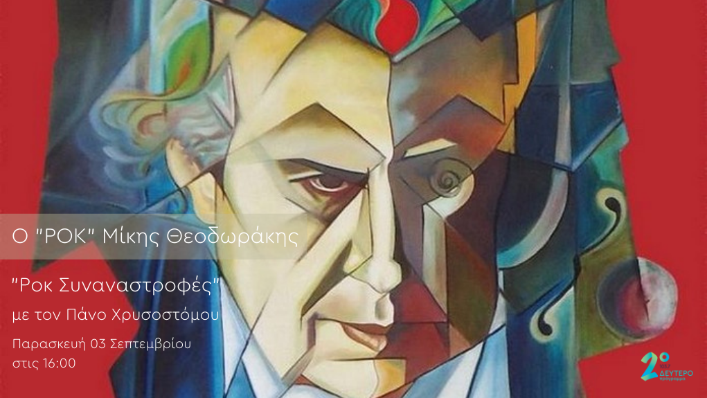 Παρασκευή 3 Σεπτεμβρίου στο Δεύτερο πρόγραμμα στις «Ροκ συναναστροφές» στις 4 το απόγευμα, ο Πάνος Χρυσοστόμου επιμελήθηκε και παρουσιάζει ένα μεγάλο αφιέρωμα στην «ροκ» πλευρά του Μίκη Θεοδωράκη! Ο οποίος έτσι κι αλλιώς και με αυτόν τον προσδιορισμό έχει καταγραφεί εις το διηνεκές από την στάση ζωής του. Αντισυμβατικός. Ελεύθερος. Ιδεαλιστής. Ουμανιστής. Κι όλα τα άλλα που έχουν ήδη ειπωθεί και αποτελούν θεμελιώδεις αρχές της ροκ ιδεολογίας. Ήρθε η ώρα όμως και για ένα αφιέρωμα στην συνάντηση του Μίκη Θεοδωράκη με την ροκ μουσική φόρμα.