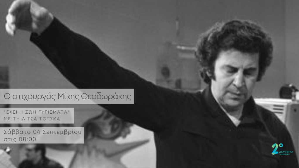 Σάββατο 04 Σεπτεμβρίου, 08:00-10:00, “Έχει η ζωή γυρίσματα” με τη Λίτσα Τότσκα. Ο στιχουργός Μίκης Θεοδωράκης, οδηγεί τα βήματά μας.