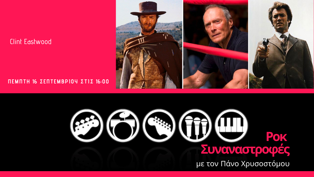 Αφιέρωμα στις μουσικές των ταινιών του Clint Eastwood στις Ροκ Συναναστροφές με τον Πάνο Χρυσοστόμου που κάθε Πέμπτη φλερτάρουν …εντόνως τον κινηματογράφο, με ευκαιρία την κυκλοφορία από σήμερα και στη χώρα μας της νέας ταινίας “Cry Macho” που θα συζητηθεί.