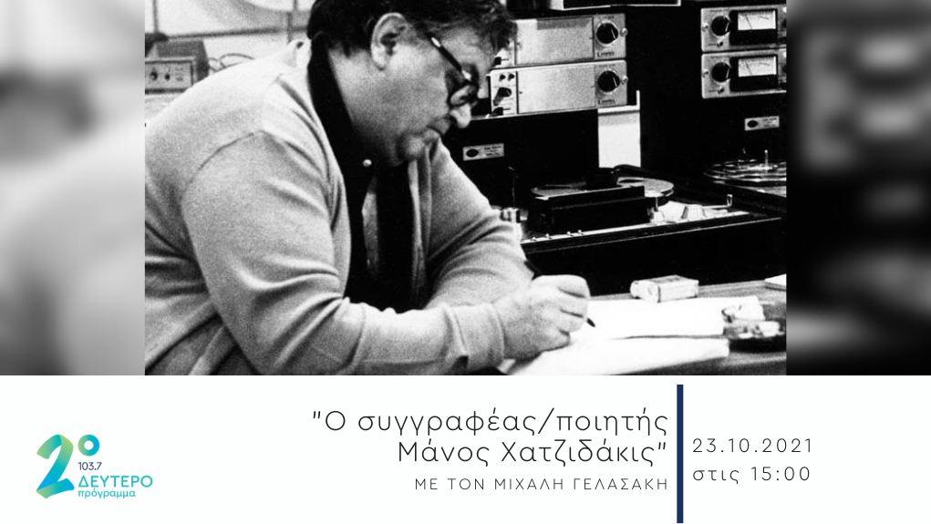 Σάββατο 23 Οκτωβρίου, 15:00-16:00, «Ο συγγραφέας/ποιητής Μάνος Χατζιδάκις», με τον Μιχάλη Γελασάκη.