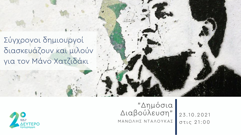 Σάββατο 23 Οκτωβρίου, 21:00-22:00, για τα 96 χρόνια από τη γέννηση του Μάνου Χατζιδάκι, δημιουργοί από τη σύγχρονη νεανική (και όχι μόνο) μουσική σκηνή διασκευάζουν τραγούδια του, όχι για εμπορική χρήση αλλά για να ακουστούν στην εκπομπή «Δημόσια Διαβούλευση» του Μανώλη Νταλούκα.