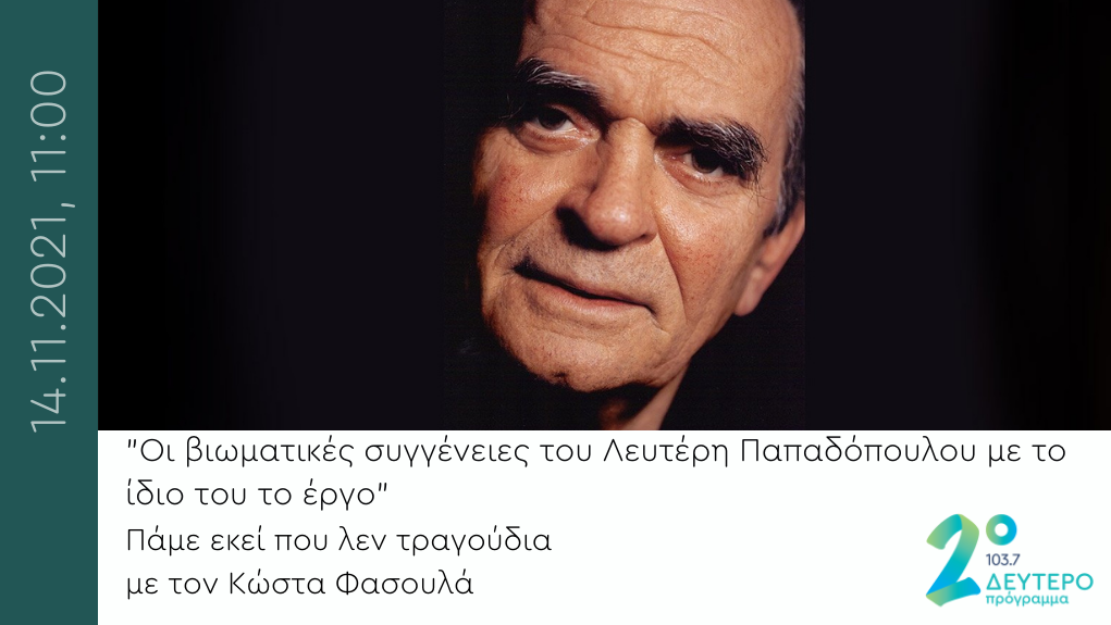 Με αφετηρία τη γνωστή παραδοχή του Λευτέρη Παπαδόπουλου «μπορεί να έχω γράψει εκατοντάδες τραγούδια, αλλά στην ουσία έχω γράψει ένα μόνο τραγούδι. Αυτό για τη γειτονιά μου», ο Κώστας Φασουλάς στην εκπομπή «Πάμε εκεί που λεν τραγούδια» αναζητεί τις βιωματικές συγγένειες του στιχουργού με το ίδιο του το έργο. Τραγούδια που φωτίζουν τις βαθιά ανθρώπινες και αντιηρωικές στιγμές της ζωής μας συναντούν τις μνήμες του Λευτέρη Παπαδόπουλου, τα δυνατά βιώματα και την αγωνία του για την ανθρώπινη μοίρα.