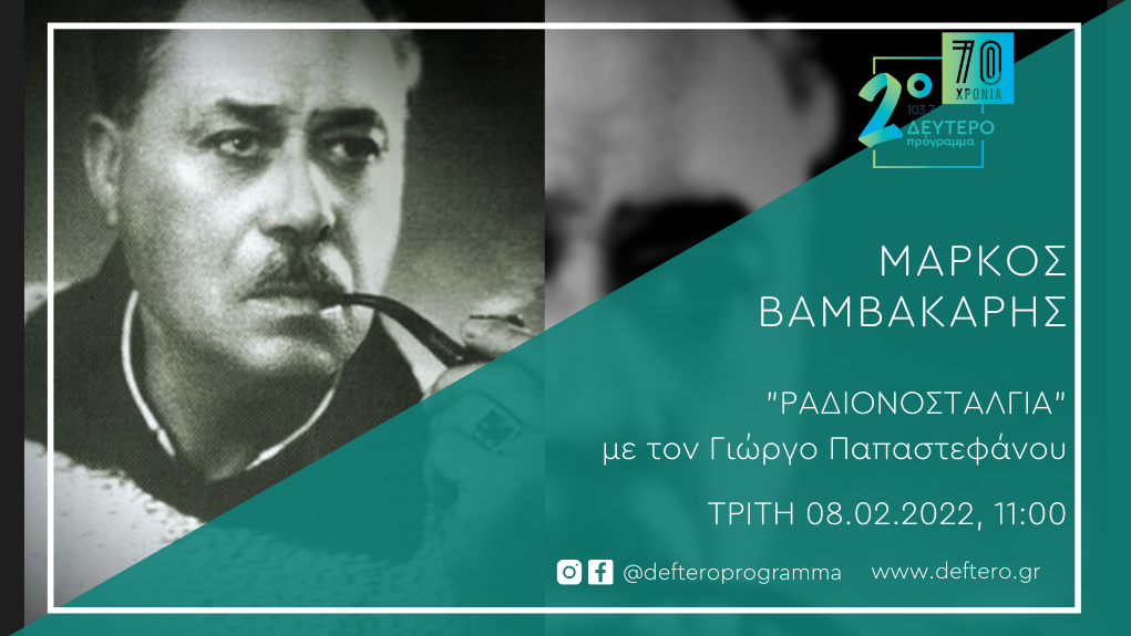 Τρίτη 08 Φεβρουαρίου, 11:00-12:00, από το Αρχείο της Ελληνικής Ραδιοφωνίας «Ραδιονοσταλγία» – αφιέρωμα στον Μάρκο Βαμβακάρη από τον Γιώργο Παπαστεφάνου με στοιχεία για τη ζωή του και τραγούδια του από παλιές και νεότερες ηχογραφήσεις.