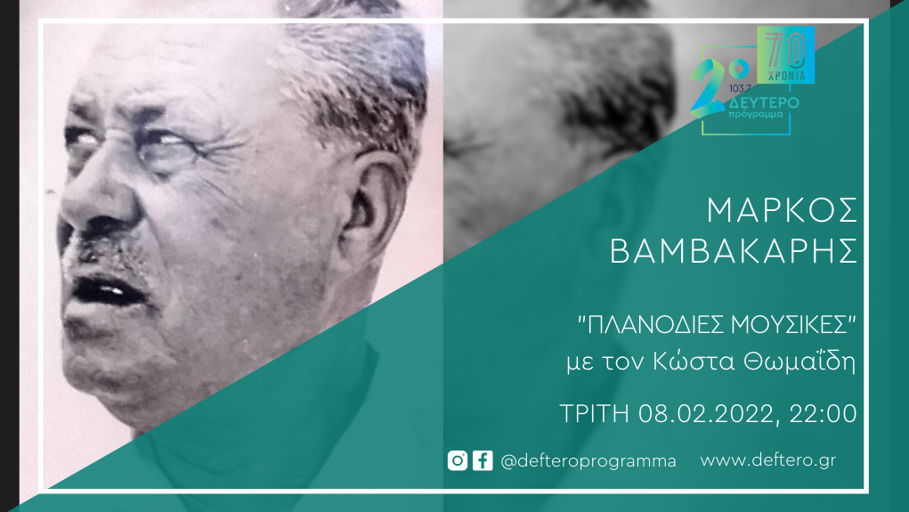 “Πλανόδιες Μουσικές”: «Πολλά είδανε τα μάτια μου» – Το Δεύτερο Πρόγραμμα 103,7 τιμά τον Μάρκο Βαμβακάρη