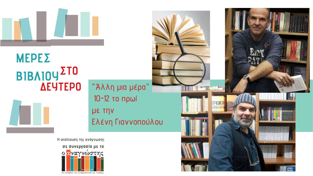 Η Ελένη Γιαννοπούλου στην εκπομπή της «Άλλη μια μέρα» 10:00-12:00, την Τρίτη 12 Ιανουαρίου συζήτησε με τον μελετητή και κριτικό νεοελληνικής λογοτεχνίας Αριστοτέλη Σαΐνη και με τον Θεόδωρο Βασιλόπουλο γνωστού βιβλιοπωλείου, για την επίδραση της πανδημίας στην αναγνωστική συμπεριφορά και τις πωλήσεις των βιβλίων.