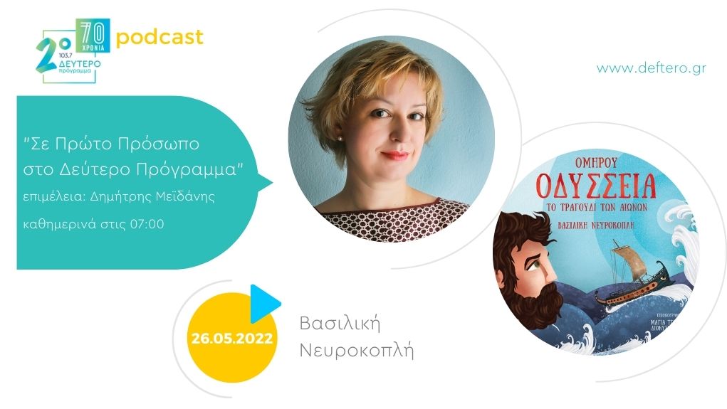 Σήμερα η Βασιλική Νευροκοπλή μας μιλάει για το βιβλίο της «ΟΜΗΡΟΥ ΟΔΥΣΣΕΙΑ, ΤΟ ΤΡΑΓΟΥΔΙ ΤΩΝ ΑΙΩΝΩΝ».