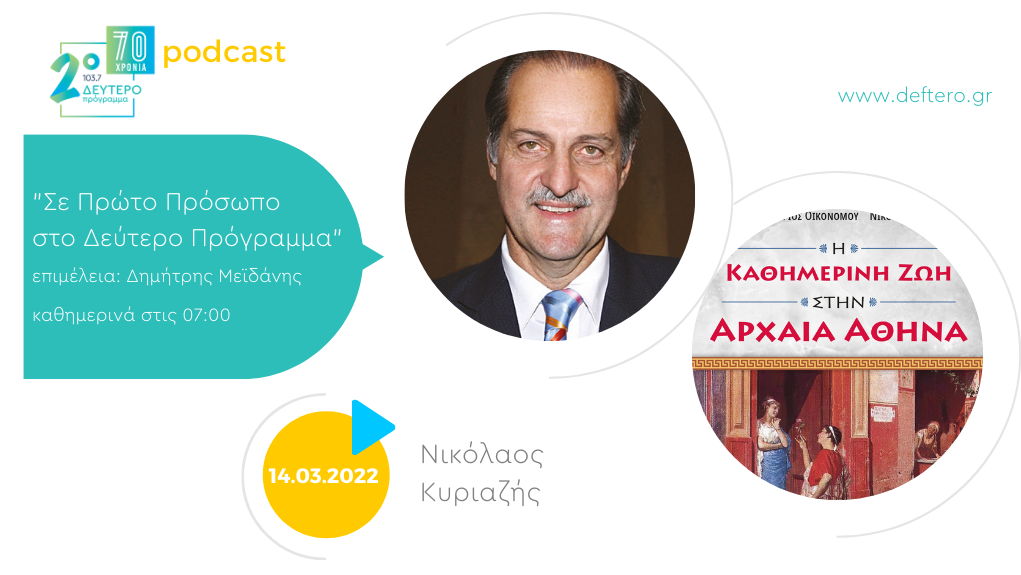 Σήμερα ο Νικόλαος Κυριαζής μας μιλάει για το βιβλίο το οποίο συνέγραψε με τον Εμμανουήλ – Μάριο Οικονόμου, «Η καθημερινή ζωή στην Αρχαία Αθήνα».