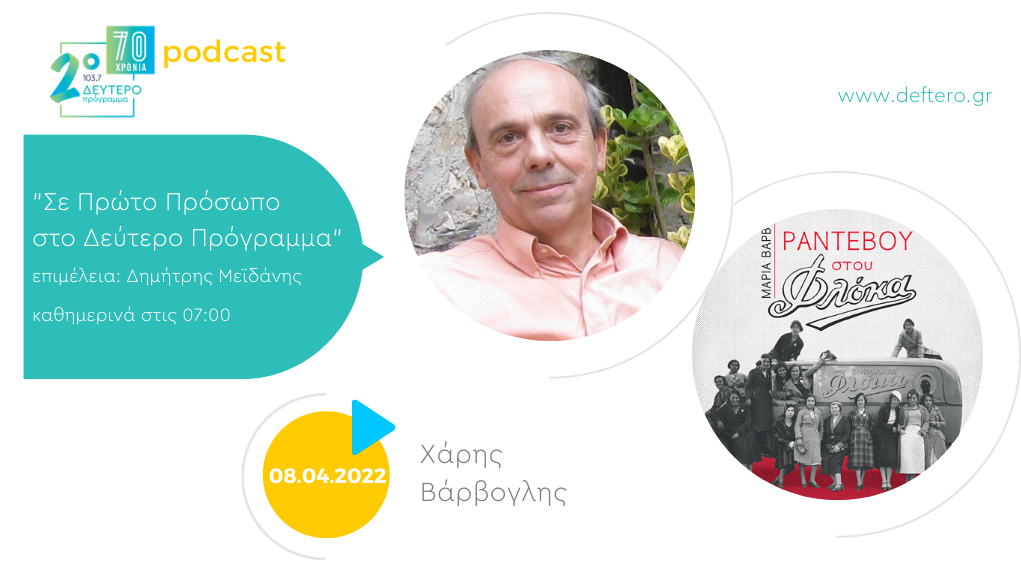 Σήμερα ο Χάρης Βάρβογλης μας μιλάει για βιβλίο της Μαρίας Βάρβογλη, «Ραντεβού στου Φλόκα» (Η ιστορία των γνωστών ζαχαροπλαστείων). Αρχειακή επιμέλεια: Χάρης Βάρβογλης