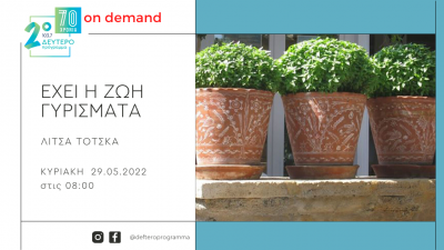 «Έχει η ζωή γυρίσματα» Μία δίωρη ραδιοφωνική περιπλάνηση, τα πρωινά του Σαββατοκύριακου. Σελίδες πολιτισμού, ιστορίες για την Τέχνη και την επιστήμη, πρόσωπα γνωστά και άγνωστα που οι επιλογές τους άνοιξαν δρόμους, ερωτήσεις που γεννούν αναπάντεχες απαντήσεις, σε μία δίωρη ραδιοφωνική περιπλάνηση, τα πρωινά του Σαββατοκύριακου στο Δεύτερο Πρόγραμμα, συντροφιά με τη Λίτσα Τότσκα. Όπως είπε και ο Σοφοκλής: «Ο χρόνος αποκαλύπτει τα πάντα και τα φέρνει στο φως»