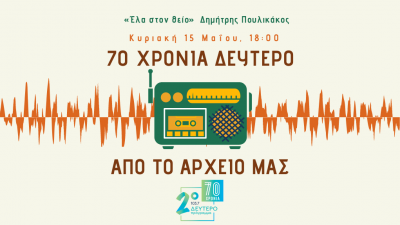 Με αφορμή τα 70 χρόνια του Δεύτερου Προγράμματος που συμπληρώνονται φέτος, η Έλενα Διάκου και ο Σιδερής Πρίντεζης επιμελήθηκαν και παρουσιάζουν μια επιλογή σπάνιων και χαρακτηριστικών εκπομπών από το Αρχείο της Ελληνικής Ραδιοφωνίας. Κάθε Κυριακή απόγευμα στις 18:00 ακούμε εκπομπές λόγου και μουσικής που είχαν μεταδοθεί παλιότερα από το Δεύτερο Πρόγραμμα.