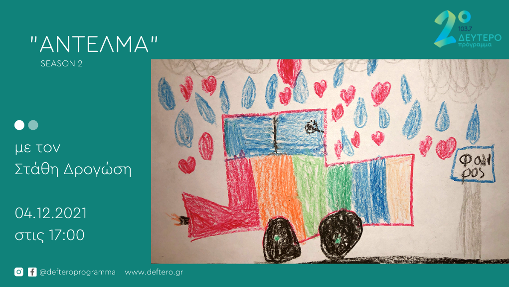 Και όπως πάντα στο τέλος της εκπομπής θα ακουστεί και μια διασκευή φτιαγμένη με αγάπη για τους ακροατές του Δεύτερου προγράμματος. Αυτό το Σάββατο πάμε εκδρομή με τ αμάξι με παρέα το Δεύτερο Πρόγραμμα και την Αντέλμα! (artwork Ανδριάνα Δρογώση)