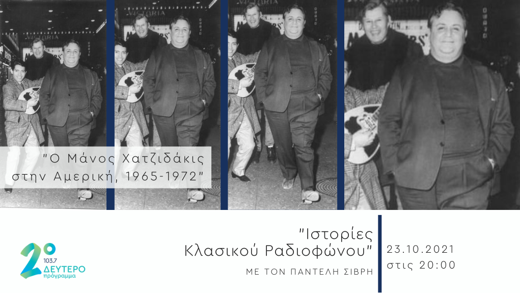 Σάββατο 23 Οκτωβρίου, 20:00-21:00, «Ο Μάνος Χατζιδάκις στην Αμερική, 1965-1972», με τον Παντελή Σιβρή στις «Ιστορίες κλασικού ραδιοφώνου».