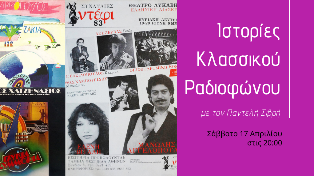 Σήμερα στις “Ιστορίες Κλασσικού Ραδιοφώνου” με τον Παντελή Σιβρή: Άνοιξη ήταν του 1983 και ο Διονύσης Σαββόπουλος έβγαζε τα “Τραπεζάκια έξω”. Η “Γλυκιά Συμμορία”, η ταινία του Νίκου Νικολαΐδη, δημιουργούσε τους κινηματογραφικούς ήρωες μιας νέας γενιάς και ο Γιώργος Χατζηνάσιος έγραφε ένα απ΄ τα ωραιότερα Ελληνικά soundtracks. Όμως η χρονιά ήταν της αμφισβήτησης και της αποδόμησης των πάντων. Τι είναι εμπορικό και τι ποιοτικό; Αυτά τα δύο πάνε μαζί; Το περιοδικό “Ντέφι” φέρνει τον Μανώλη Αγγελόπουλο στο θέατρο του Λυκαβηττού με τεράστια επιτυχία, η ΕΡΤ μεταδίδει ζωντανά τη συναυλία και τα πάθη ανάβουν. Αυτά και άλλα πολλά, απόψε 20.00 – 21.00, στο Δεύτερο πρόγραμμα ΕΡΤ 103 .7. Συντονιστείτε! “Ιστορίες από το παρελθόν που ακόμα λάμπουν”!