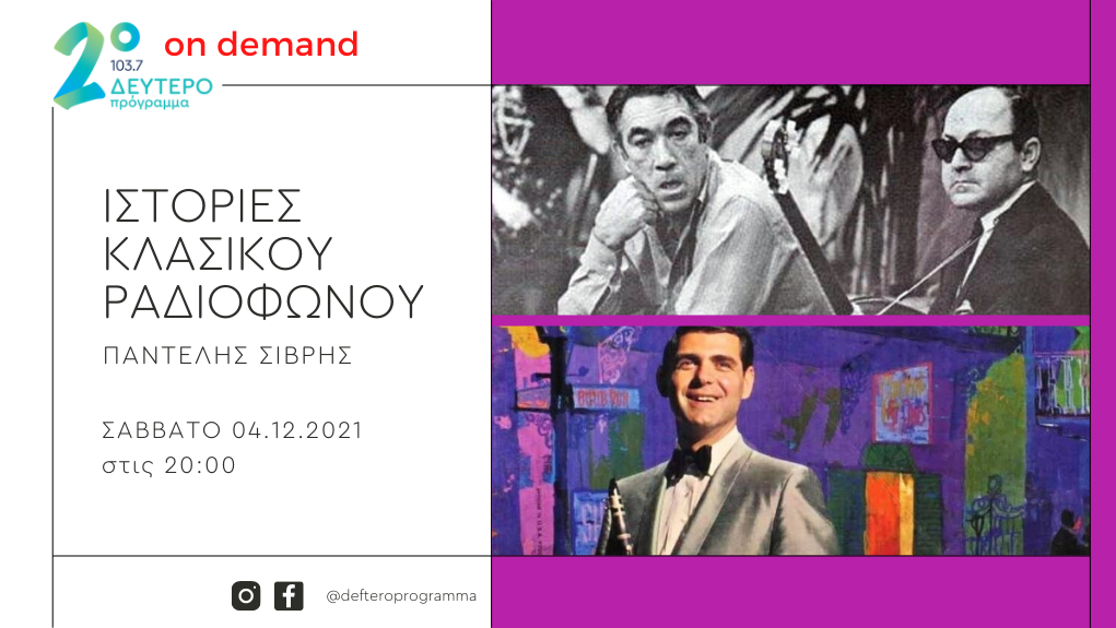 Σήμερα στις «Ιστορίες Κλασικού Ραδιοφώνου» με τον Παντελή Σιβρή, μετά από 16 ωριαίες εκπομπές αφιερωμένες στις περιπέτειες και στις ηχογραφήσεις των «Ελλήνων έξω από τα σύνορα» τον αιώνα που μας πέρασε, κλείνουμε τη σειρά αυτή πανηγυρικά. Υποσχόμαστε να επανέλθουμε κάποια στιγμή στο μέλλον, με έκτακτες εκπομπές αφού το ρεπερτόριο είναι ανεξάντλητο και από την ερχόμενη εβδομάδα «ανιχνεύουμε» άλλες ιστορίες και εποχές. Απόψε είναι εδώ κάποιοι από τους πρωταγωνιστές των 16 ωρών: O Gus Vali, η Σοφία Βέμπο, ο Χάρης Λεμονόπουλος, η Ειρήνη Παππά από την Αμερική, ο Γιάννης Σπανός και η Νάνα Μούσχουρη από το Παρίσι, ο Άρης Σάν από το Ισραήλ και αρκετοί άλλοι. Αυτά και άλλα πολύ-πολιτισμικά 20.00 – 21.00, στο Δεύτερο Πρόγραμμα 103 .7. “Ιστορίες από το παρελθόν που ακόμα λάμπουν”!