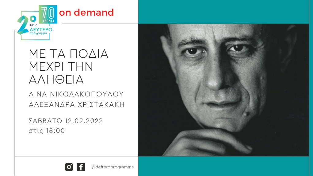 Ο διπλωμάτης, ποιητής και κριτικός λογοτεχνίας, πρέσβης επί τιμή Γιώργος Βέης είναι ο καλεσμένος της Λίνας Νικολακοπούλου και της Αλεξάνδρας Χριστακάκη το Σάββατο 12 Φεβρουαρίου, στις 18.00 και στην εκπομπή «Με τα πόδια μέχρι την αλήθεια» στο Δεύτερο Πρόγραμμα 103.7