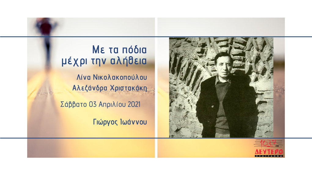 Σάββατο 3 Απριλίου 2021 στις 18.00, στο Δεύτερο Πρόγραμμα και στην εκπομπή “Με τα πόδια μέχρι την αλήθεια”.