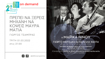 Τρίτη 1η Μαρτίου, 9 με 10 το βράδυ, στο Δεύτερο Πρόγραμμα 103.7.