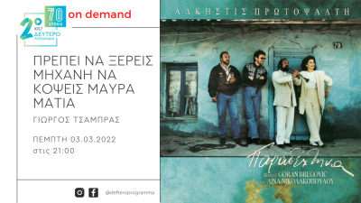 Πέμπτη 3 Μαρτίου, 9 με 10 το βράδυ, στο Δεύτερο Πρόγραμμα 103.7.