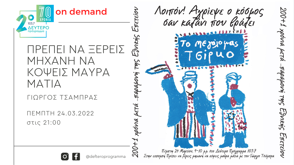 Πέμπτη 24 Μαρτίου 2022, 9 με 10 το βράδυ, στο Δεύτερο Πρόγραμμα 103.7.