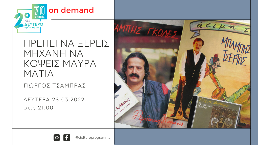 Δευτέρα 28 Μαρτίου, 9 με 10 το βράδυ, στο Δεύτερο Πρόγραμμα 103.7.