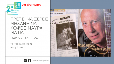Τρίτη 17 Μαΐου, 9 με 10 το βράδυ, στο Δεύτερο Πρόγραμμα και στην εκπομπή του Γιώργου Τσάμπρα.