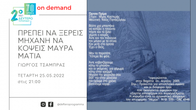 Τετάρτη 25 Μαΐου, 9 με 10 το βράδυ, στο Δεύτερο Πρόγραμμα 103,7.