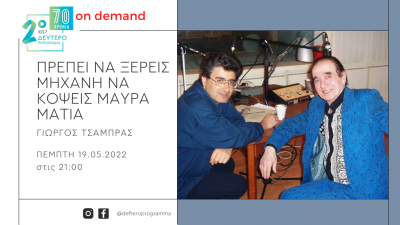 Πέμπτη 19 Μαΐου, 9 με 10 το βράδυ, στο Δεύτερο Πρόγραμμα 103.7.