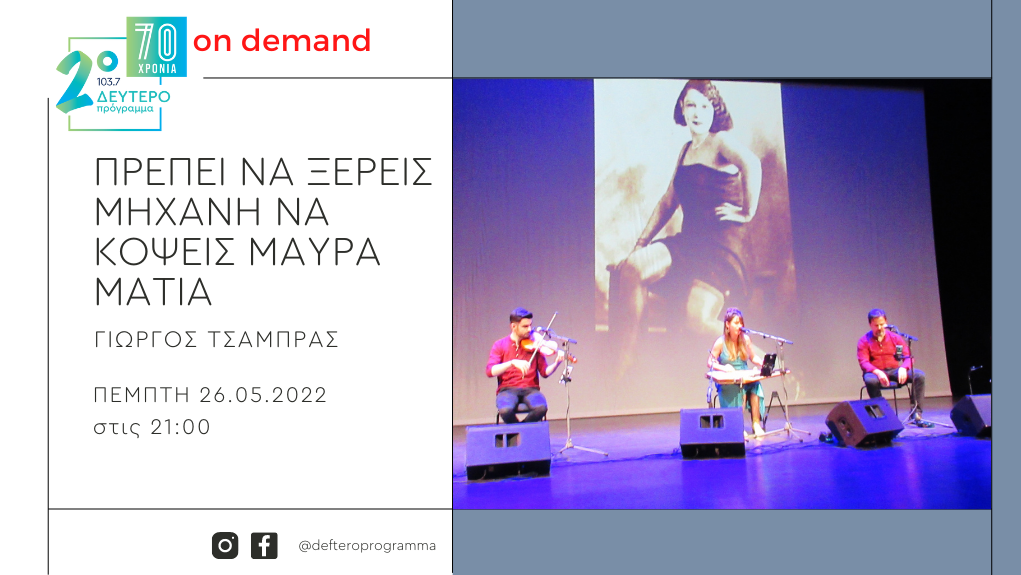 Πέμπτη 26 Μαΐου, 9 με 10 το βράδυ, στο Δεύτερο Πρόγραμμα 103.7