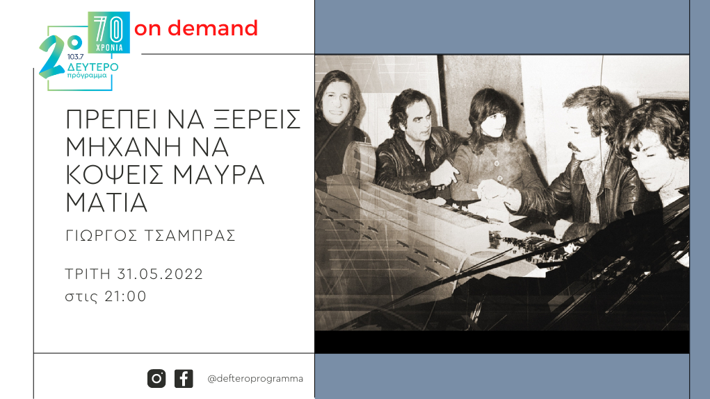Τρίτη 31 Μαΐου 2022, 9 με 10 το βράδυ, στο Δεύτερο Πρόγραμμα 103.7.