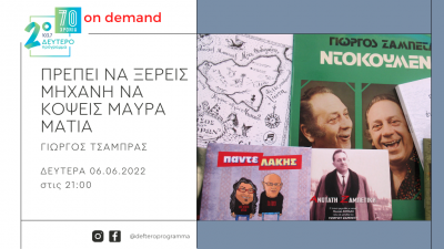 Τρίτη 06 Ιουνίου, 9 με 10 το βράδυ, στο Δεύτερο Πρόγραμμα 103.7 στην εκπομπή του Γιώργου Τσάμπρα.