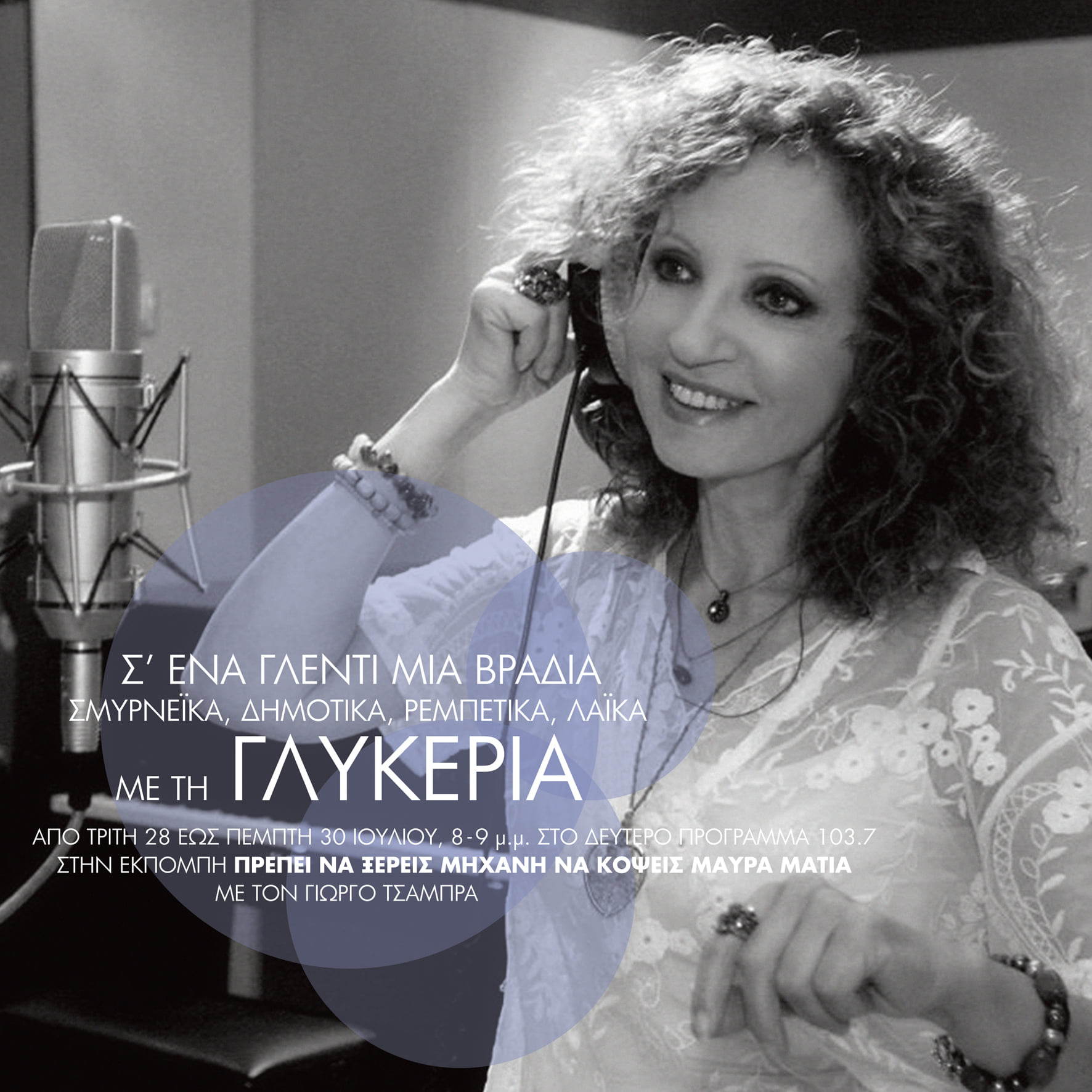 Μια επιλογή από τις ηχογραφήσεις με την Γλυκερία, σε κομμάτια της ιστορίας του λαϊκού τραγουδιού. Από το ξεκίνημά της, μέχρι και τις μέρες μας. Ξεκινώντας από το «Μην κάνεις όνειρα τρελά» του Απόστολου Καλδάρα το 1978, συναντάμε μαζί της τα «Σμυρναίικα» από τις αρχές του ’80, τα χορευτικά της «Όμορφης Νύχτας» στο Γαλάτσι, τα στεριανά και τα νησιώτικα στη «Βόλτα στην Ελλάδα». Αλλά και τον τρόπο και τις αφορμές που ταξίδεψαν αυτά και άλλα ανάλογα στις εμφανίσεις της, μέχρι τις μέρες μας και παράλληλα με τις προσωπικές της επιλογές. Το «Σμυρναίικο μινόρε», επιστρέφει συχνά την τελευταία πενταετία, ως πλήρης παράσταση αλλά και ως διάθεση επιλογών.