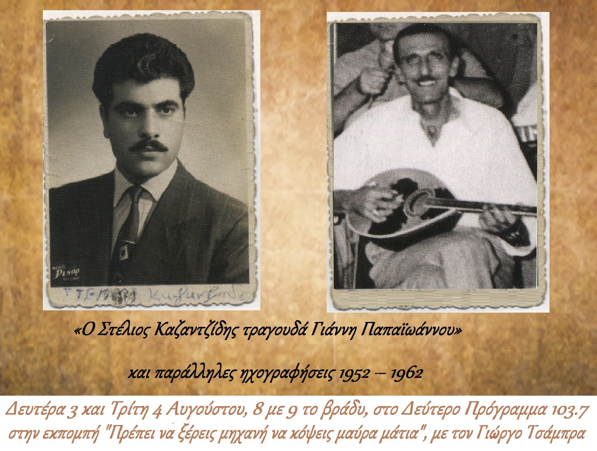 «Ο Στέλιος Καζαντζίδης τραγουδά Γιάννη Παπαϊωάννου» και παράλληλες ηχογραφήσεις 1952 – 1962, Δευτέρα 3 και Τρίτη 4 Αυγούστου 2020, 8 με 9 το βράδυ, στην εκπομπή του Γιώργου Τσάμπρα.