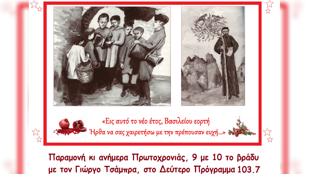 Κάλαντα για την Πρωτοχρονιά από τα Δωδεκάνησα (Ρόδο, Πάτμο, Κω) την Χίο, την Καππαδοκία και την Ερυθραία της Μικράς Ασίας, την Κρήτη, την Μύκονο, την Σαντορίνη και την Αμοργό των Κυκλάδων, το Λιτόχωρο, την Κοζάνη, την Κέρκυρα και την Ιθάκη. Παραμονή Πρωτοχρονιάς, 9 με 10 το βράδυ, στο Δεύτερο Πρόγραμμα 103.7. Κυρίως, από επιτόπιες ηχογραφήσεις, που πραγματοποίησε ο Σίμων Καρράς, στα χρόνια 1958-1976. Τρία χρόνια πριν, αποτέλεσαν την έκδοση «Ανοίξετε την πόρτα σας!». Πάντα με την πεποίθηση και με στόχο ότι «Πρέπει να ξέρεις μηχανή να κόψεις μαύρα μάτια».