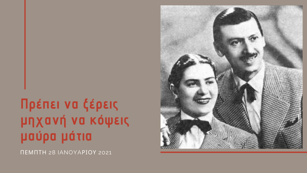 Πέμπτη 28 Ιανουαρίου, 9 με 10 το βράδυ, στο Δεύτερο Πρόγραμμα 103.7. Μοιράζοντας τα 600 – περίπου – τραγούδια του Γιώργου Μητσάκη στους ερμηνευτές τους, έχουμε μια σαφή εικόνα για τις επιλογές, για τις προτιμήσεις του από εποχή σε εποχή. Η Ιωάννα Γεωργακοπούλου, η Σωτηρία Μπέλλου, η Μαρίκα Νίνου και ο ίδιος λένε τα περισσότερα τραγούδια του στην πρώτη εποχή του γραμμοφώνου. Όταν όμως μπαίνει στις επιλογές του ο Στέλιος Καζαντζίδης, είναι εκείνος που παίρνει τα σκήπτρα. Συνολικά, θα πει 45 τραγούδια του Μητσάκη – τα περισσότερα στις 78 στροφές και λίγα σε μικρά δισκάκια του ’60. Θα χρησιμοποιήσει αρκετά και τραγουδιστές που συνδέονται κατ’ εξοχήν μαζί του: Τον Δημήτρη Ρουμελιώτη, τον Νίκο Γιουλάκη, τον Θόδωρο Κανακάρη, την Μπέμπα Μπλάνς. Αλλά, θα δώσει και αρκετά τραγούδια και στην Πόλυ Πάνου και λιγότερα, στην Καίτη Γκρέυ και την Γιώτα Λύδια. Ενώ η τραγουδίστρια που κυρίως συνδέθηκε μαζί του στο πάλκο, η Άννα Χρυσάφη, θα ηχογραφήσει ελάχιστα τραγούδια του και μάλιστα σε πρώτη εκτέλεση. Στα χρόνια των 45 στροφών και των μεγάλων δίσκων, θα συναντηθεί με τον Γιάννη Καλατζή, τη Λίτσα Διαμάντη, τον Γιώργο Νταλάρα. Ο Γιάννης Μπογδάνος είναι ένας τραγουδιστής που θα πει πολλά από τα τελευταία του τραγούδια, ενώ η Γλυκερία ξαναλέγοντας το «Μού ‘φαγες τα δαχτυλίδια», θα κάνει ιδιαίτερη αίσθηση στην τελευταία δεκαετία της ζωής του. Από τις ηχογραφήσεις όλων αυτών με τον Γιώργο Μητσάκη, οι σημερινές μας επιλογές. Πάντα με την πεποίθηση και με στόχο ότι «Πρέπει να ξέρεις μηχανή να κόψεις μαύρα μάτια».