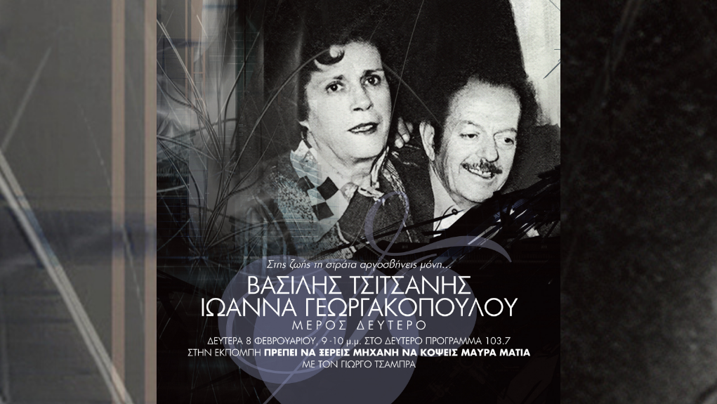 Δευτέρα 8 Φεβρουαρίου, 9 με 10 το βράδυ, στο Δεύτερο Πρόγραμμα 103.7. Μια δεύτερη εκπομπή με την οποία συμπληρώνεται το σύνολο των τραγουδιών που ηχογράφησε η Ιωάννα Γεωργακοπούλου δίπλα στον Βασίλη Τσιτσάνη, ως πρώτη ή ως δεύτερη φωνή. Η συνεργασία τους ξεκίνησε με τις «φιλενάδες» των προπολεμικών χρόνων και ολοκληρώθηκε λίγο πριν το 1950. Μετά την Νταίζυ Σταυροπούλου, ήταν η γυναικεία φωνή του Τσιτσάνη, ως τη στιγμή που εκείνος επέλεξε να βρεθούν δίπλα του η Σωτηρία Μπέλλου, η Μαρίκα Νίνου και η Στέλλα Χασκίλ. Τότε, οι δρόμοι τους θα χωρίσουν. Οι σχέσεις τους όμως, θα δοκιμαστούν πολύ περισσότερο, όταν θα αρχίσουν οι αντιδικίες για τον «Τρελό τσιγγάνο», το τραγούδι που έχει δισκογραφηθεί στο όνομα της Γεωργακοπούλου αλλά ο Τσιτσάνης, συνεργαζόμενος με τον Μάνο Χατζιδάκι, θα το χρησιμοποιήσει στη διαμόρφωση του «Αγάπη που ‘γινες δίκοπο μαχαίρι», στη μουσική της «Στέλλας» του Μιχάλη Κακογιάννη. Θα ειπωθούν πολλά και για πολλά ακόμη τραγούδια στο όνομα της Γεωργακοπούλου στα χρόνια της συνεργασίας της με τον Τσιτσάνη, μέσα από τα χρόνια. Στην δεύτερη εκπομπή, ακούμε όσα τραγούδια δεν ακούσαμε στην προηγούμενη από την φανερή συνεργασία τους – χωρίς να εκφράζουμε απόλυτες απόψεις για τις κρυφές της προεκτάσεις. Πάντα με την πεποίθηση και με στόχο ότι «Πρέπει να ξέρεις μηχανή να κόψεις μαύρα μάτια».