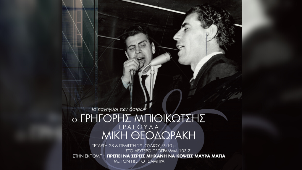 Tετάρτη 28 και Πέμπτη 29 Ιουλίου, 9 με 10 το βράδυ, στο Δεύτερο Πρόγραμμα 103.7.