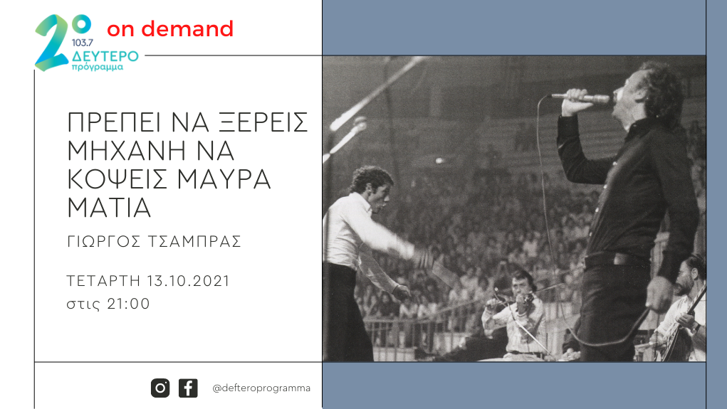 Τρίτη 12 και Τετάρτη 13/10, 9 με 10 το βράδυ, στο Δεύτερο Πρόγραμμα 103.7.
