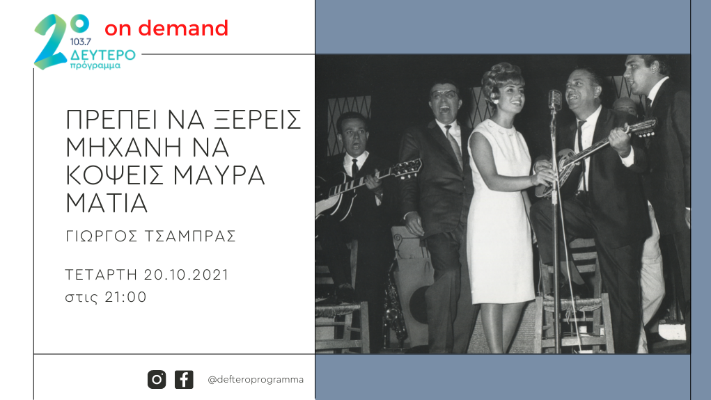 Τετάρτη 20 και Πέμπτη 21 Οκτωβρίου, 9 με 10 το βράδυ, στο Δεύτερο Πρόγραμμα 103.7.