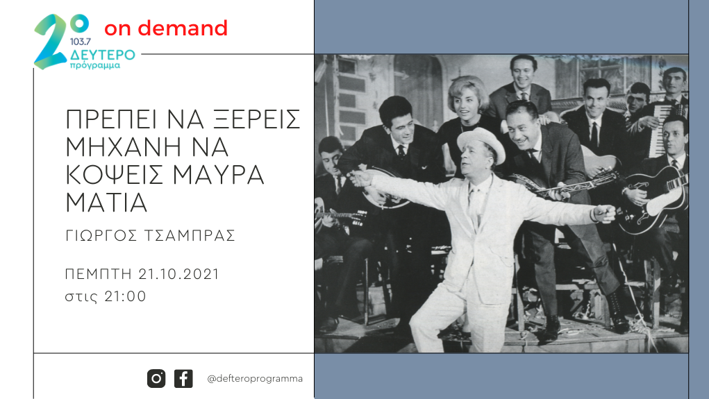 Πέμπτη 21 Οκτωβρίου, 9 με 10 το βράδυ, στο Δεύτερο Πρόγραμμα 103.7.