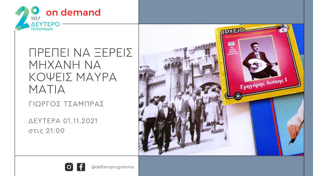 Δευτέρα 1η Νοεμβρίου, 9 με 10 το βράδυ, στο Δεύτερο Πρόγραμμα 103.7.