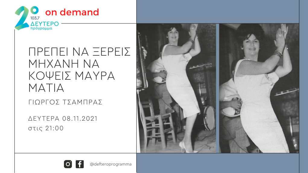 Δευτέρα 8 Νοεμβρίου, 9 με 10 το βράδυ, στο Δεύτερο Πρόγραμμα 103.7.