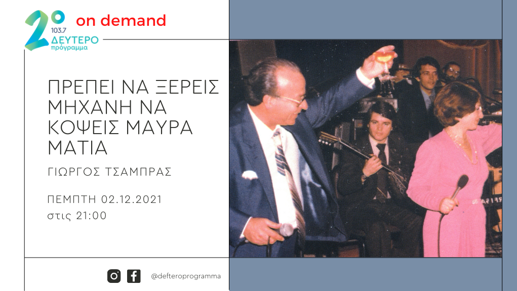 Πέμπτη 2 Δεκεμβρίου, 9 με 10 το βράδυ, στο Δεύτερο Πρόγραμμα 103.7.