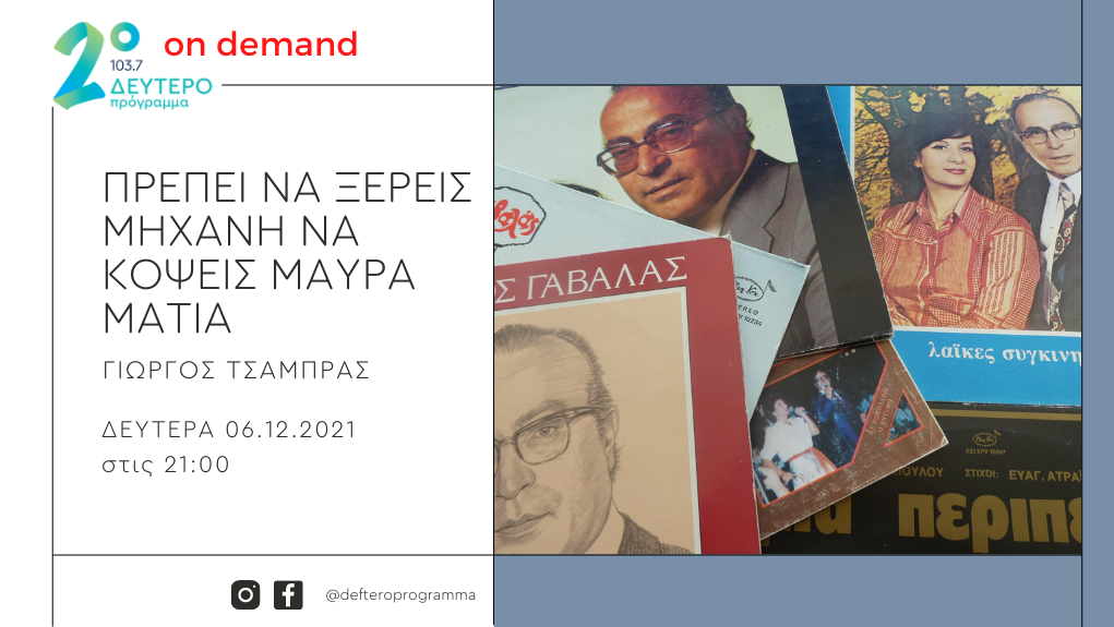 Δευτέρα 6 Δεκεμβρίου, 9 με 10 το βράδυ, στο Δεύτερο Πρόγραμμα 103.7.